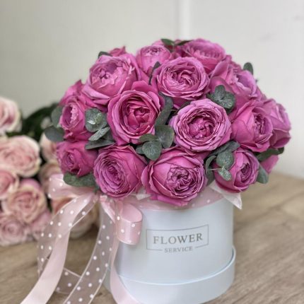 Коробка Тоскана из эустомы, кустовых и одноголовых роз, диантуса и альстромерии