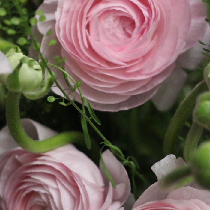 Ранункулюсы и ирландские колокольчики