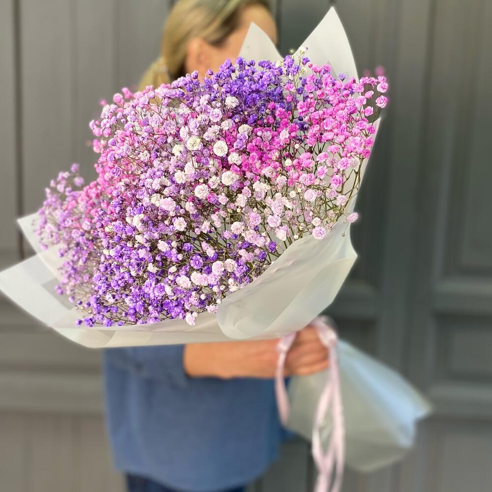 Гипсофила – 7 шт.Упаковка дизайнерская – 2 шт.Лента атласная – 2 шт.