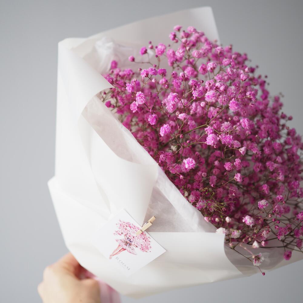 Монобукет с розовой гипсофилой