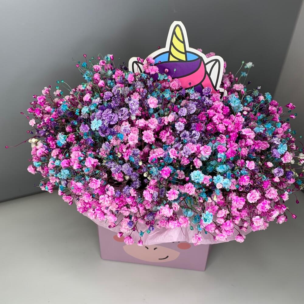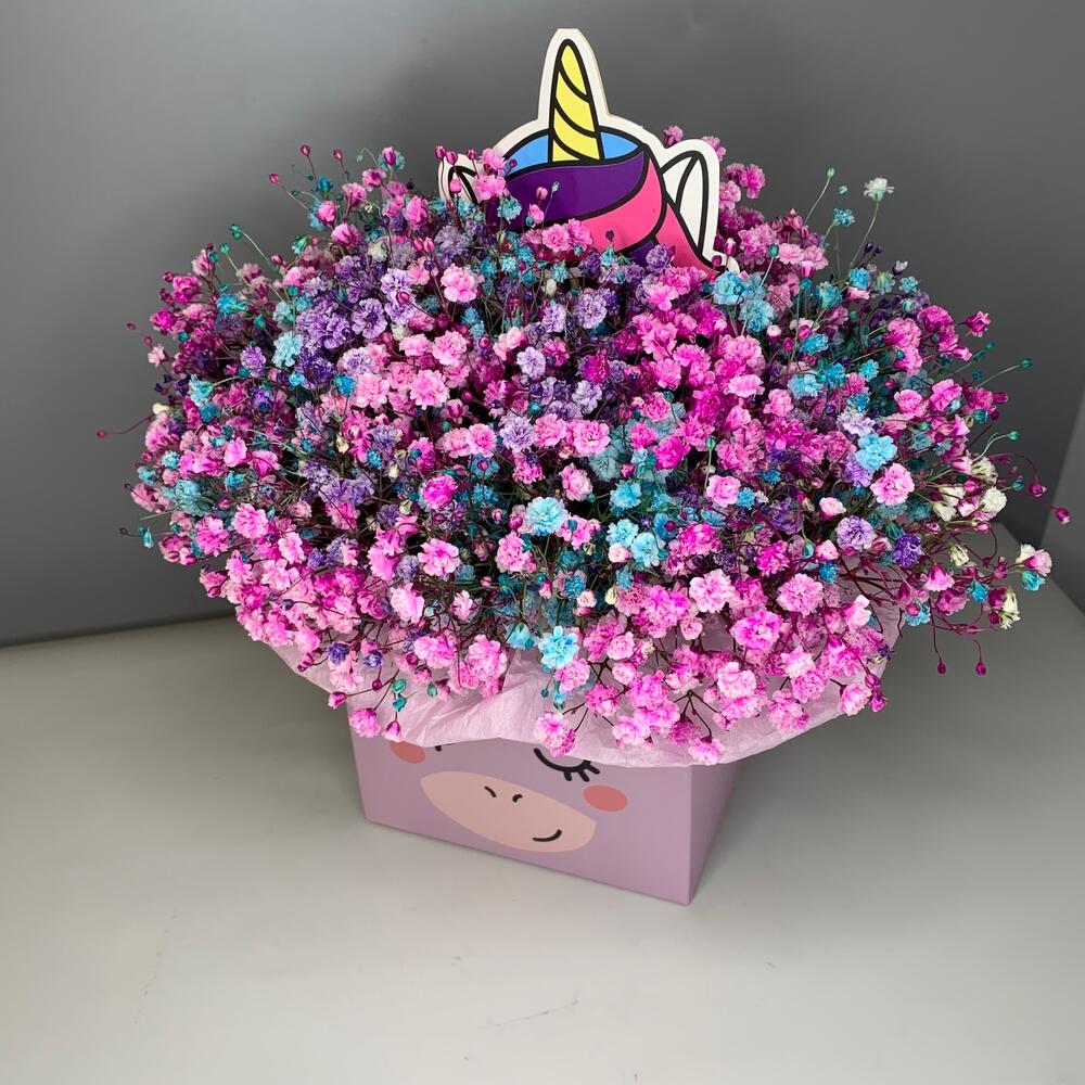 Красочная Гипсофила в коробке Единорог