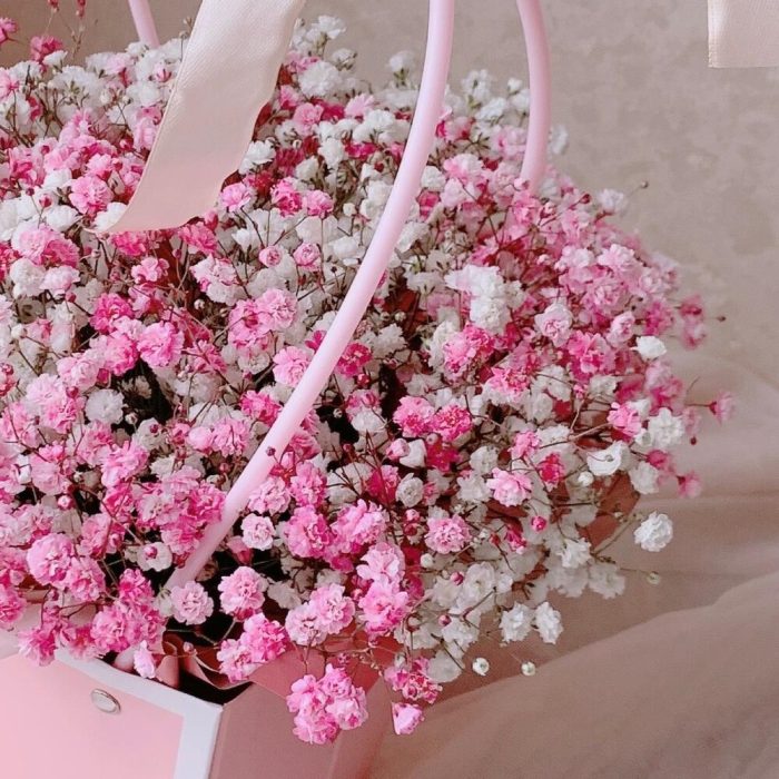 Розовая гипсофила в сумочке
