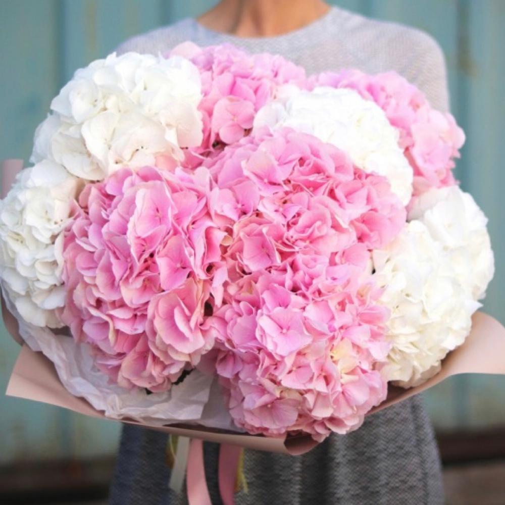 Букет из 15 белых и розовых гортензий