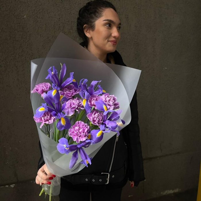Букет 26: ирисы и лунный диантус