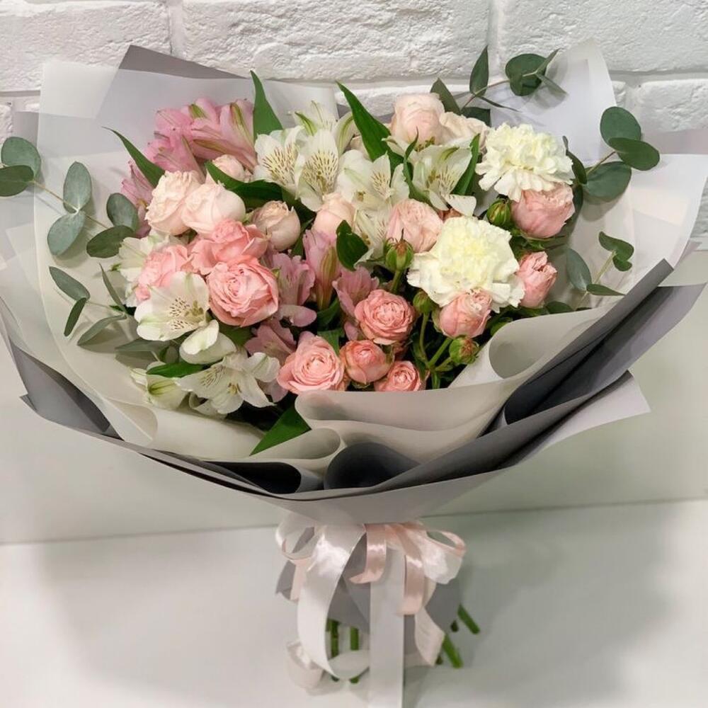 Категории: АльстромерииРозы, Гвоздики, Кустовые розы, Пионовидные розы