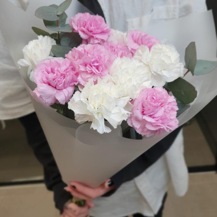 Диантус – 11 шт.Эвкалипт – 3 шт.Упаковка дизайнерская – 2 шт.