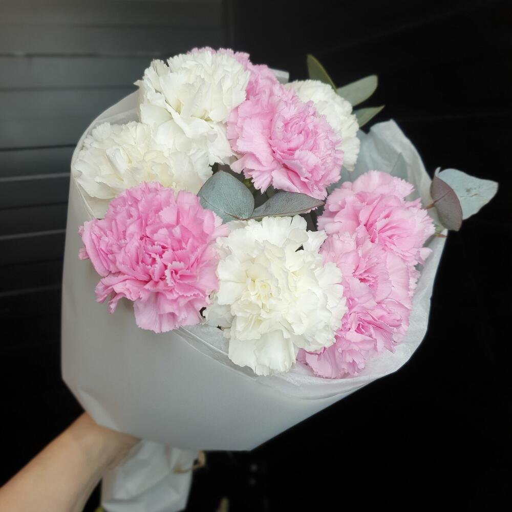Диантус – 9 шт.Эвкалипт пучок – 1 шт.Упаковка дизайнерская – 2 шт.