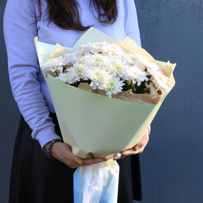 Стойкая хризантема будет радовать в букете около 10 дней и более