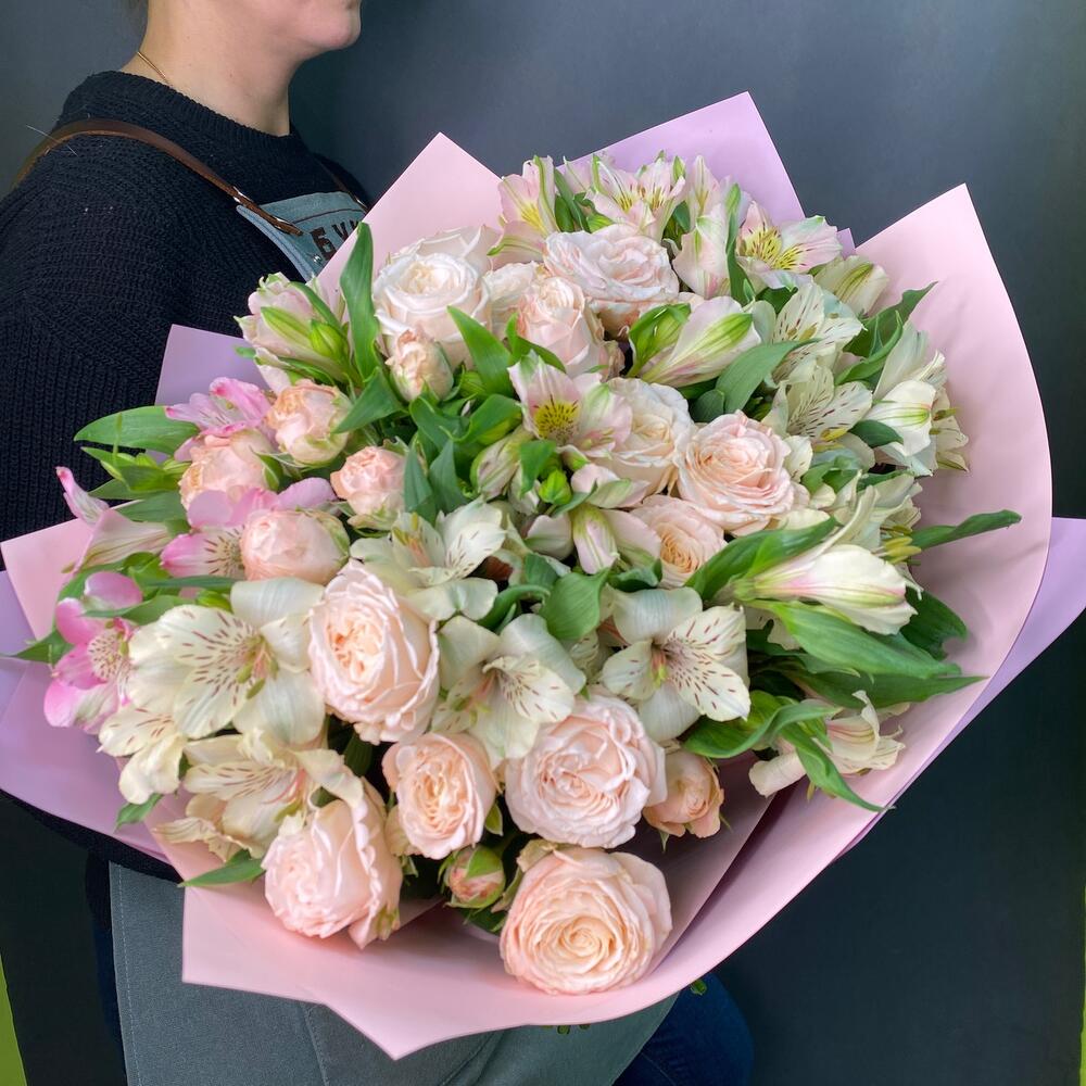 Букет кустовых роз и альстромерии «Сливки»