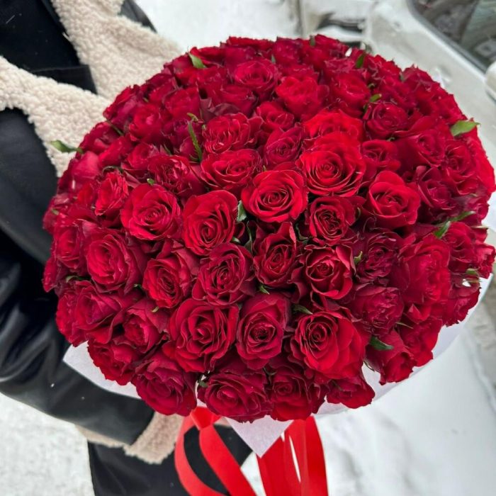 Метки: 101 роза, от 5000 руб, цветы в коробке