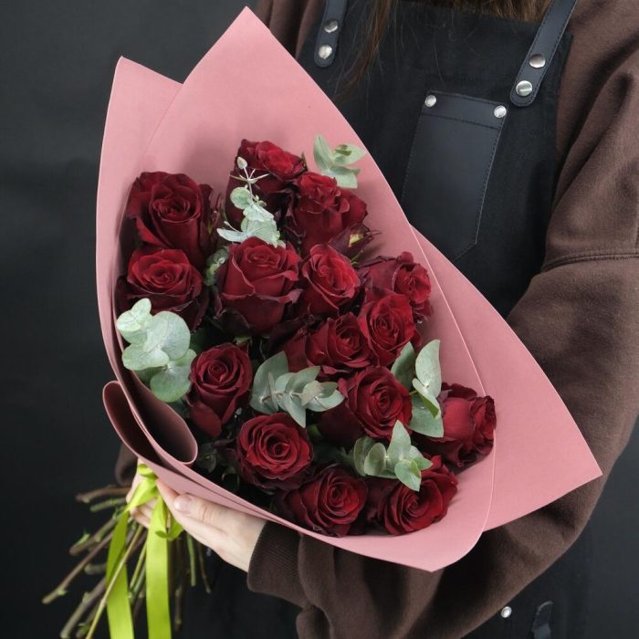 Лента – 2 шт.Эвкалипт – 1 шт.Упаковка – 1 шт.Роза Эксплорер – 15 шт.Фоамиран – 2 шт.подкормка для срезанных цветов – 1 шт.