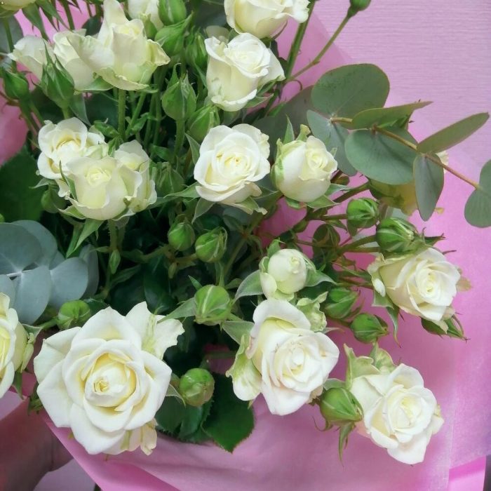 Роза кустовая – 7 шт.Эвкалипт – 3 шт.Упаковка – 1 шт.