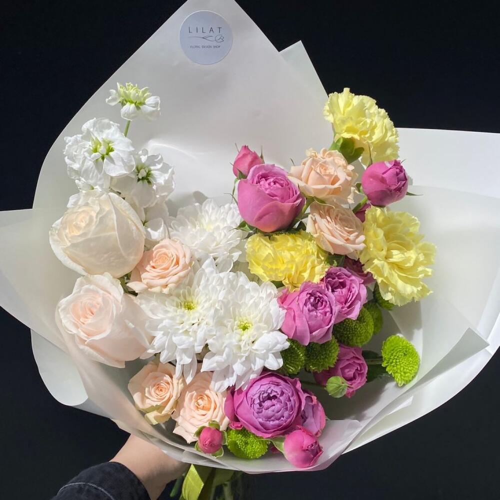 Гвоздики, Кустовые розы, Пионовидные розы, Розы