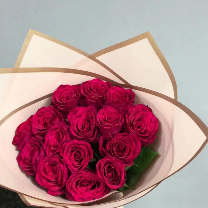 Лента атласная – 1 шт.Матовая пленка – 1 шт.роза кения – 15 шт.
