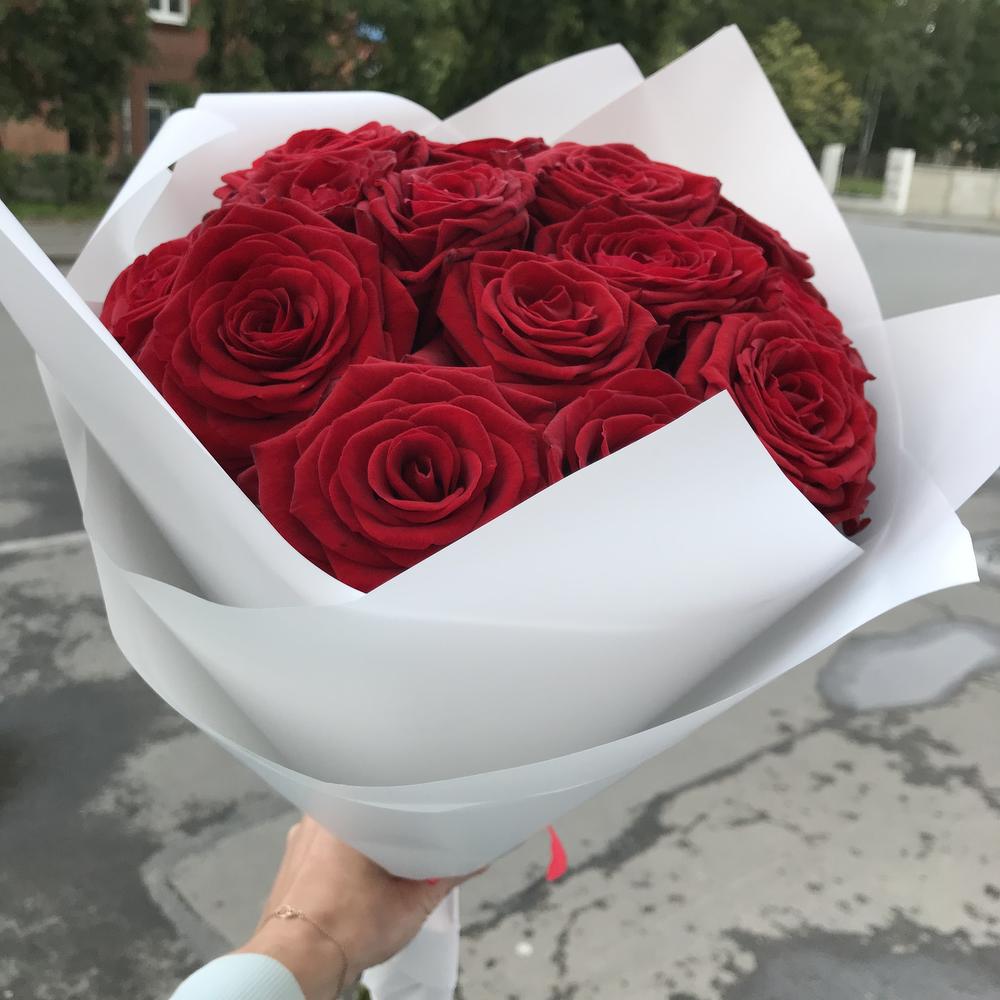 Роза – 15 шт.Упаковка – 2 шт.Лента атласная – 1 шт.