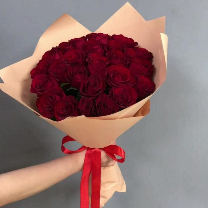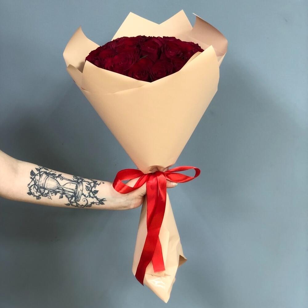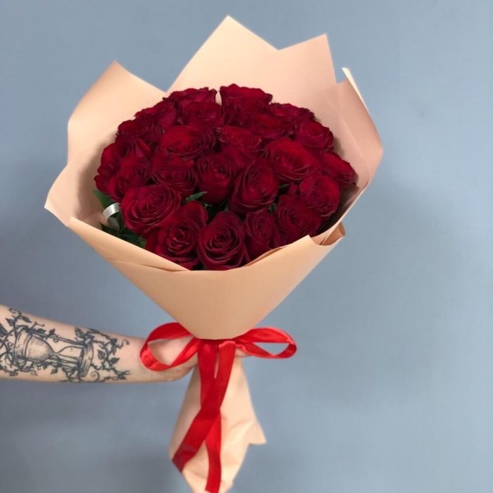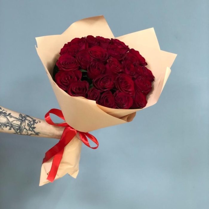 Лента атласная – 1 шт.Матовая пленка – 1 шт.Роза – 25 шт.
