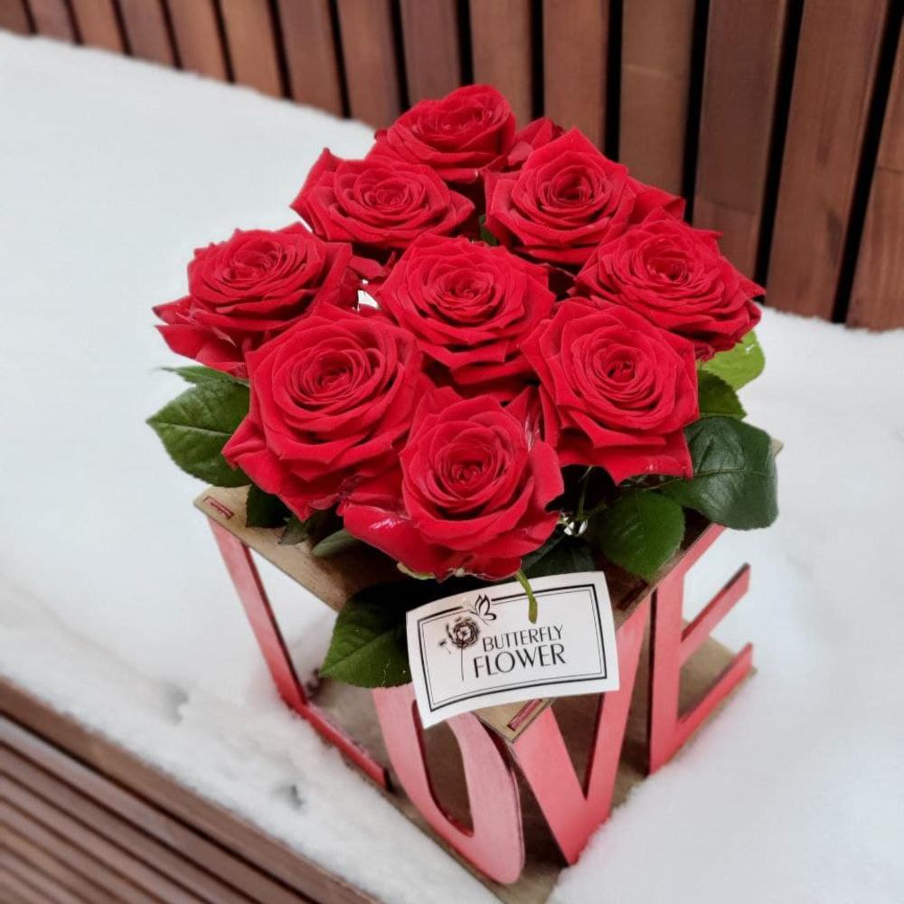 Роза – 9 шт.коробка с колбами – 1 шт.