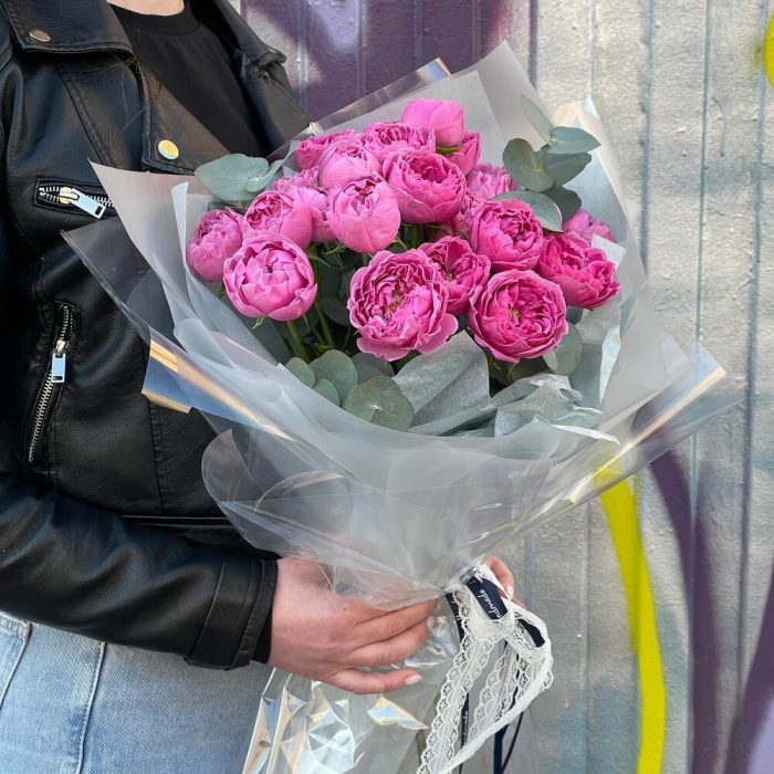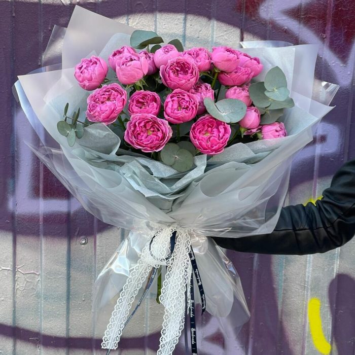 Букет из кустовой пион розы с эвкалиптом (СБ 001)