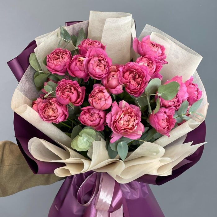 Букет из пион. малиновой розы Джульетта