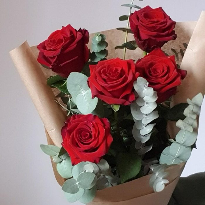Букет из роз и эвкалипта