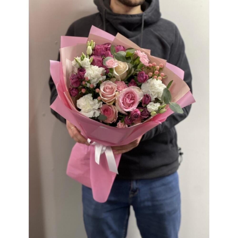 Гвоздики, Кустовые розы, Пионовидные розы, Розы