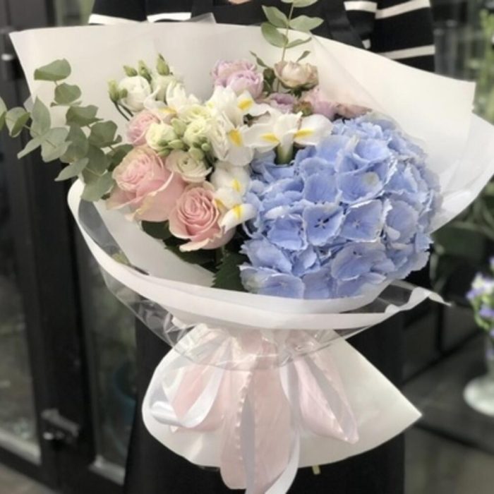 “Эвкалиптическая роскошь” гортензия и пионовидная кустовая роза