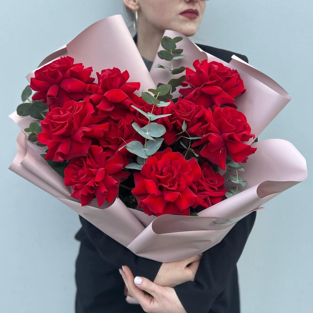 Букет «Признание» (11 французских роз и эвкалипт)