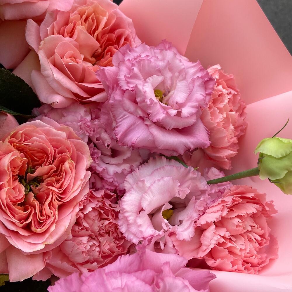 Категории: Гвоздики, Лизиантусы, Розы