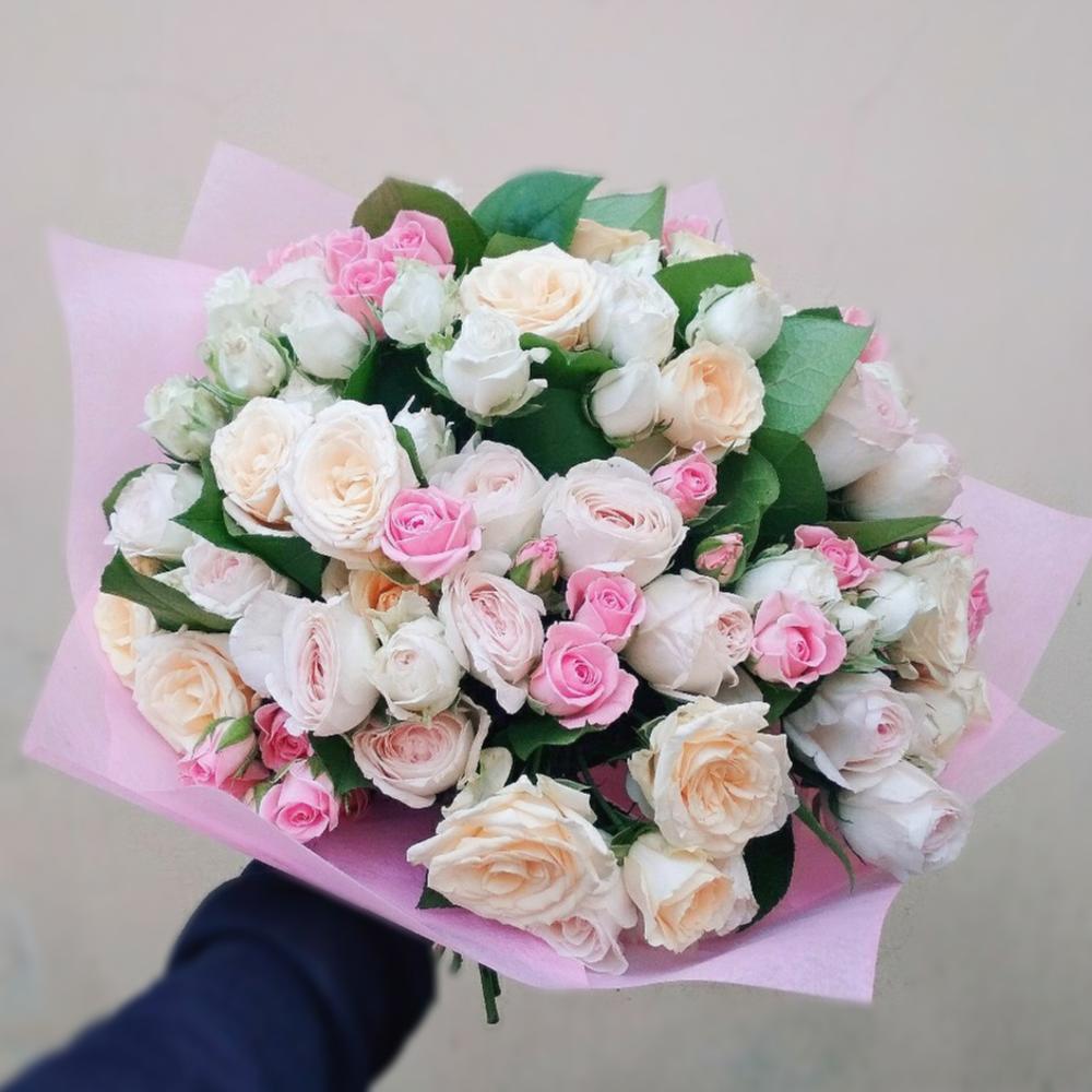 кустовая роза микс – 19 шт.Упаковка-фетр – 1 шт.