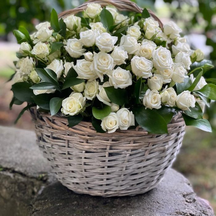 Торжественная Корзина с белыми розами.
