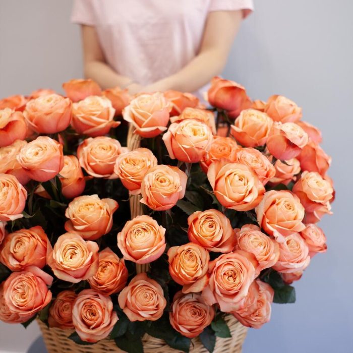 Метки: 101 роза, от 5000 руб, цветы в корзине
