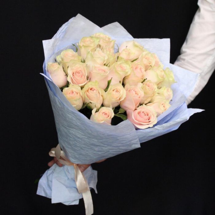 роза фруттето – 25 шт.Крафт дизайнерский – 2 шт.Лента атласная – 1 шт.