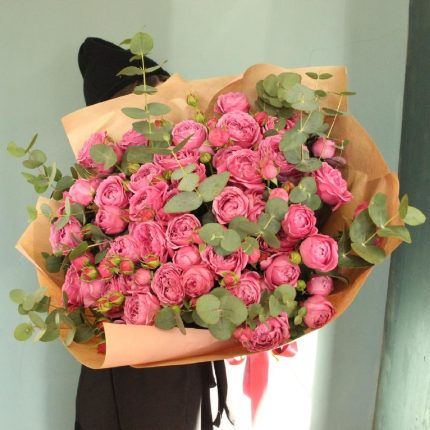 Роскошные пионовидные розочки Джульетта с веточками эвкалипта. Такой букет всегда уместен и подойдёт для любого повода: День Рождения, именины, годовщина свадьбы, рождение ребенка, 8 марта, День Святого Валентина, выпускной и т.д. Можно вручить маме, сестре, подруге, коллеге, учителю, любимой.