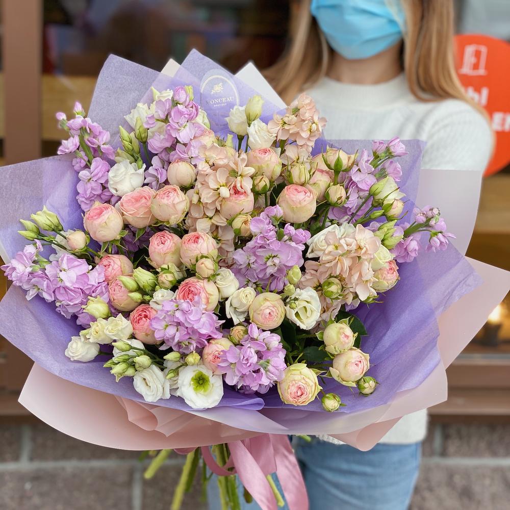 Альстромерии, Кустовые розы, Лизиантусы, Пионовидные розы, Розы, Ромашки