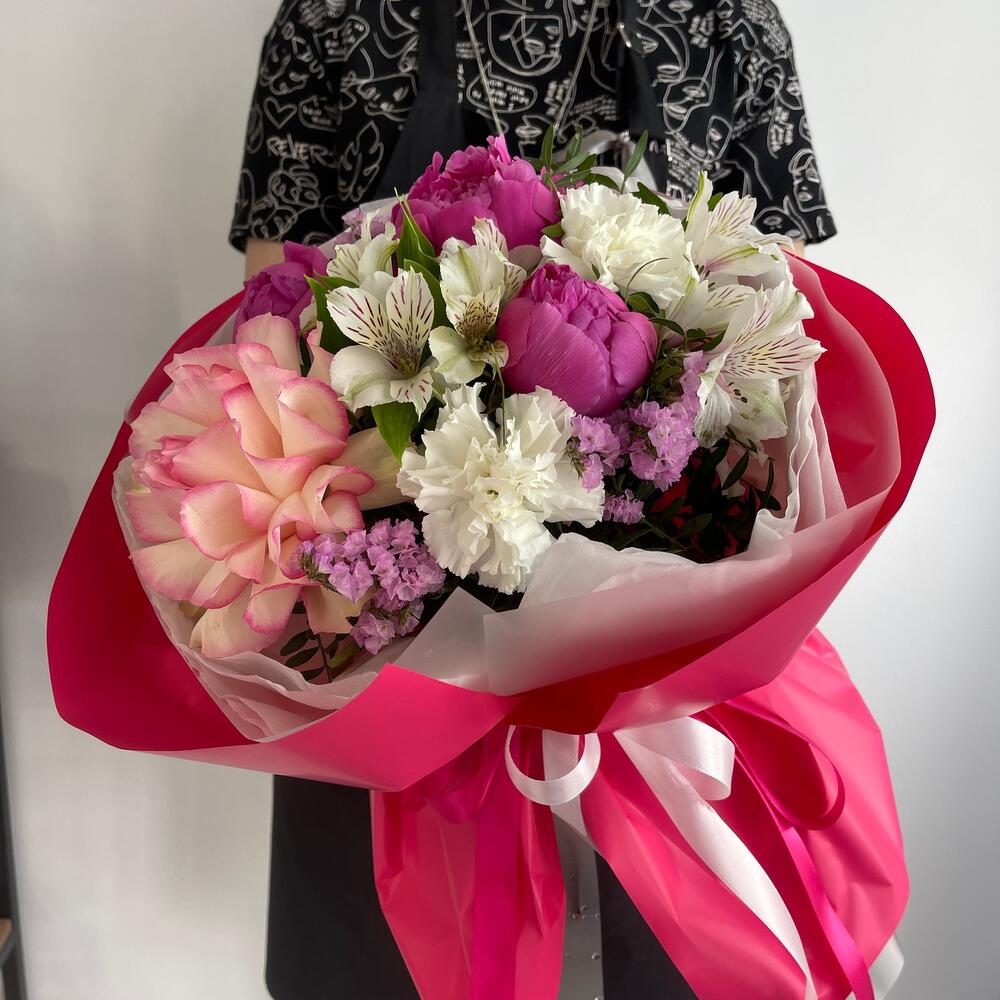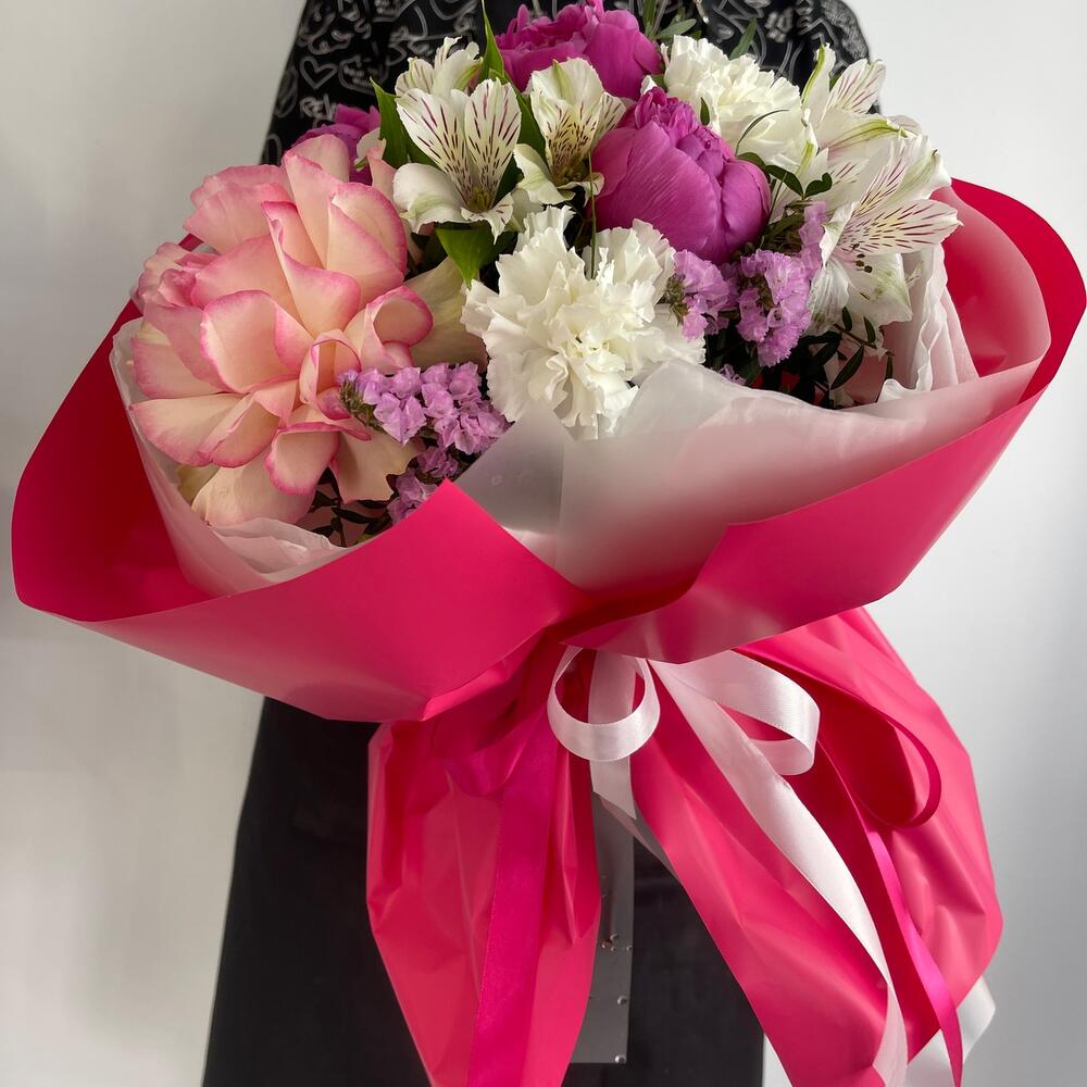 Гвоздики, Кустовые розы, Пионовидные розы, Розы